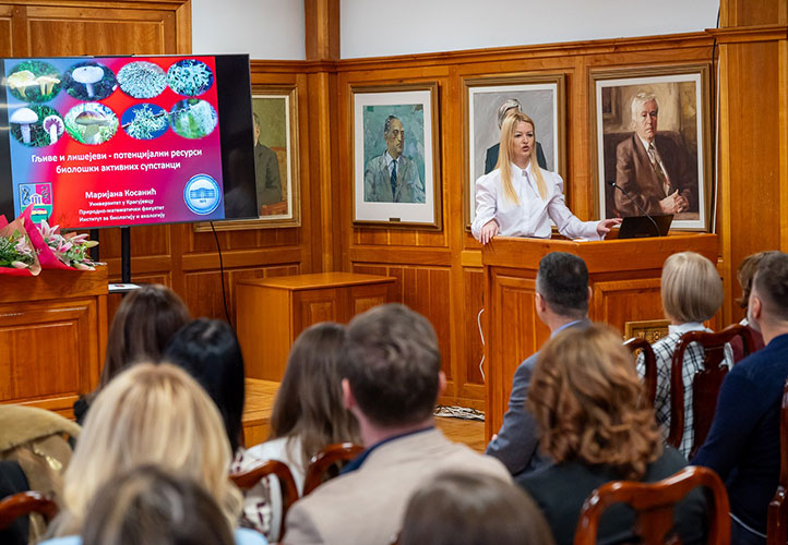 У оквиру свечаности, др Маријана Косанић, ванредни професор на Институту за биологију и екологију одржала је предавање под називом „Гљиве и лишајеви – потенцијални ресурси биолошки активних супстанци“, а њен научни рад је већ неколико година препознат на престижној Станфордовој листи најцитиранијих научника на свету.